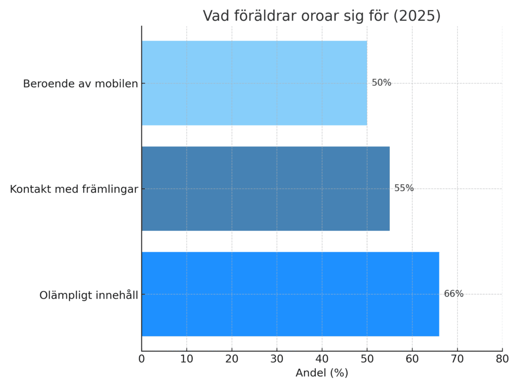 - 55 % är oroliga för att barnen får kontakt med främlingar